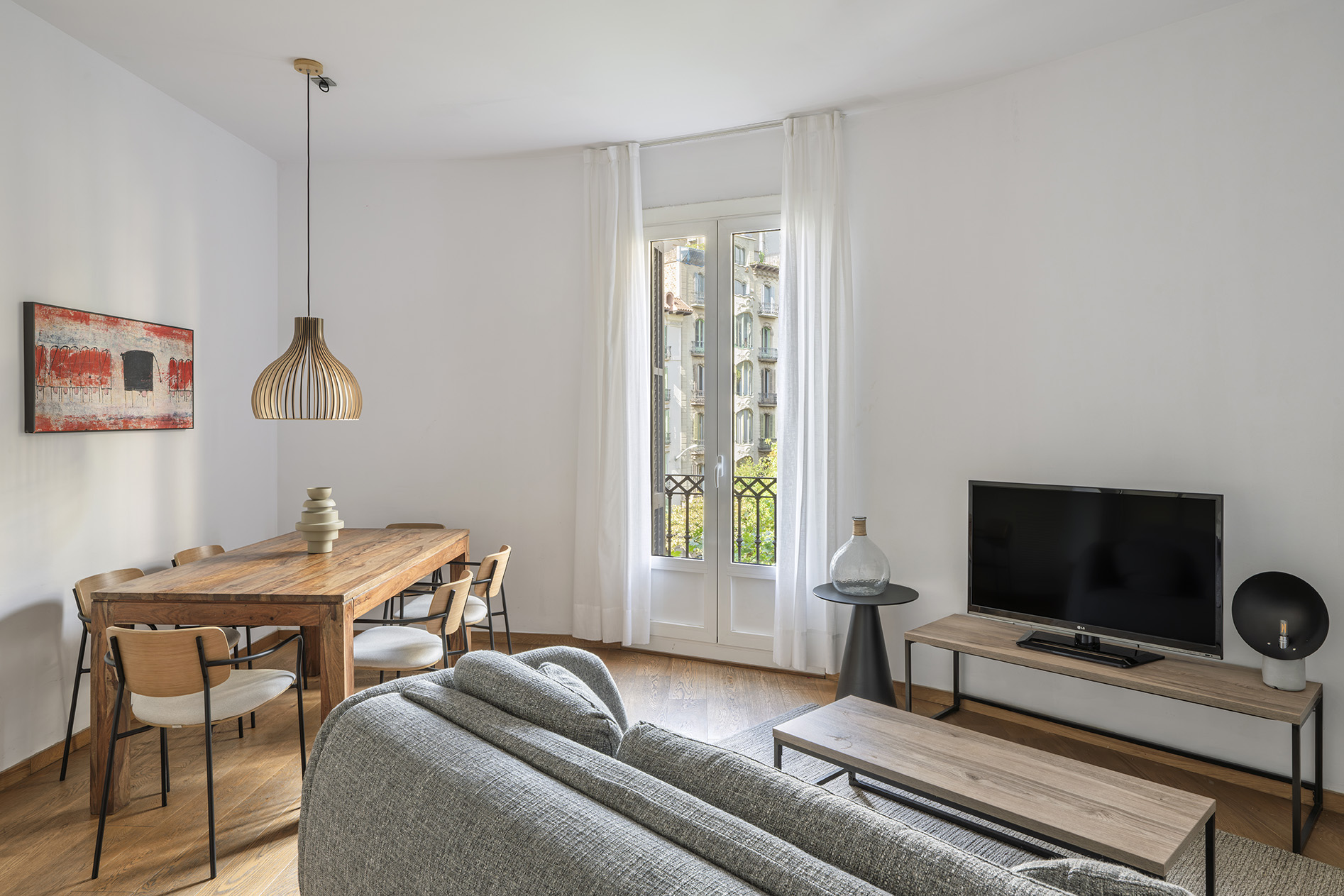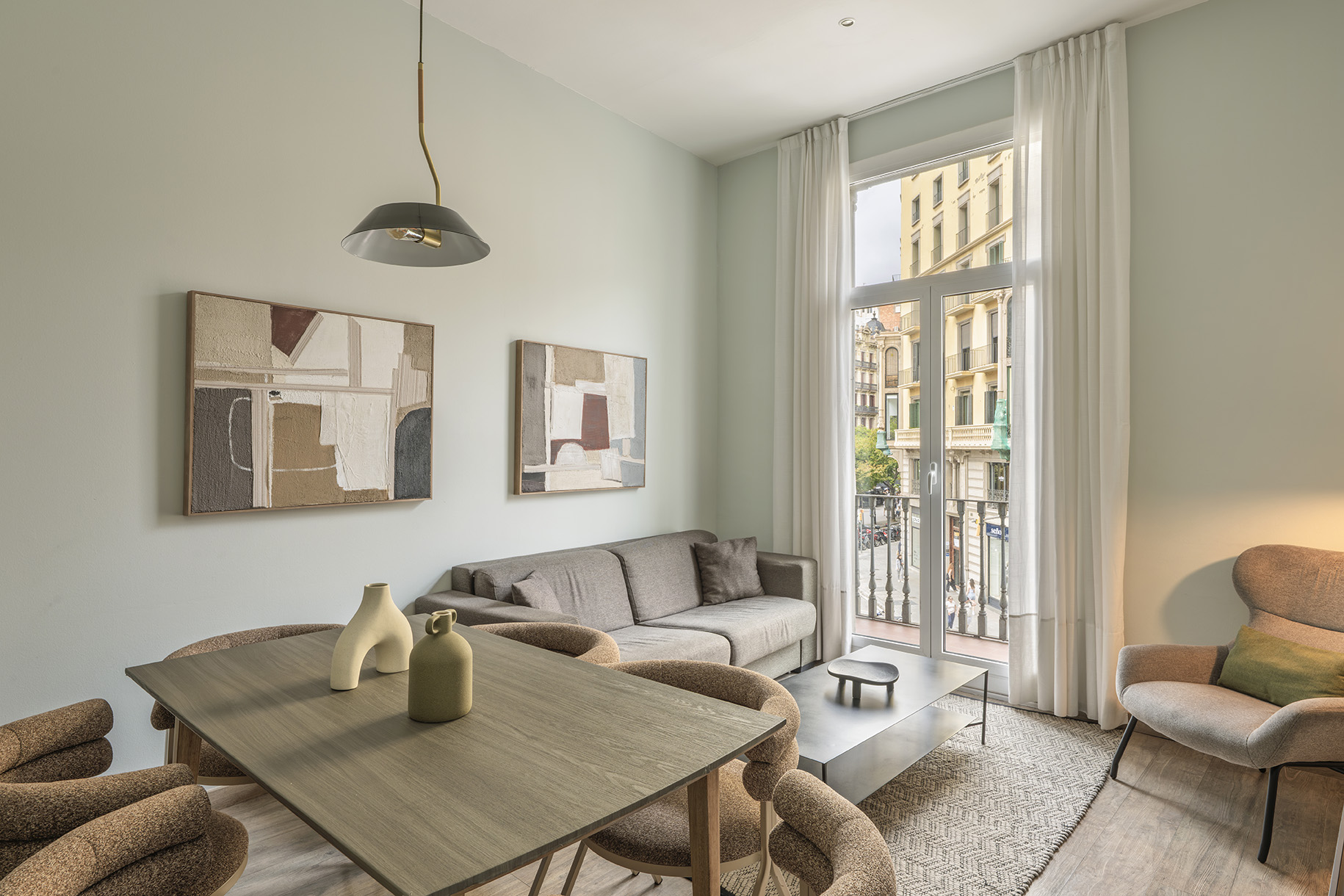 These three-bedroom, two-bathroom apartments are located in four adjoining buildings in Barcelona's central Eixample district. Enjoy the freedom and privacy of having your own apartment in the heart of the city, with all the amenities you need for an unforgettable stay.