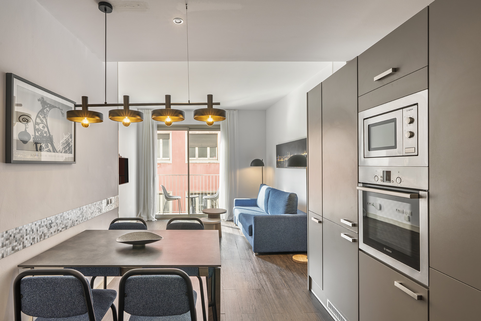 Nuestros apartamentos están equipados con todo lo necesario para asegurarte una estancia perfecta, incuyendo Wi-Fi de alta velocidad, TV, aire acondicionado y una cocina equipada con los electrodomésticos, entre otros. Además, ¡Relájate en la piscina de la azotea con vistas a la catedral!