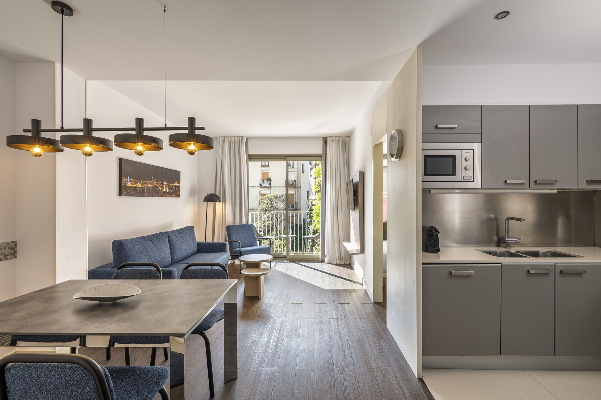 Apartamento acolhedor com dois quartos e uma casa de banho com varanda. Perfeito para grupos de quatro pessoas que desejam desfrutar de Barcelona a partir de uma localização central e pitoresca.