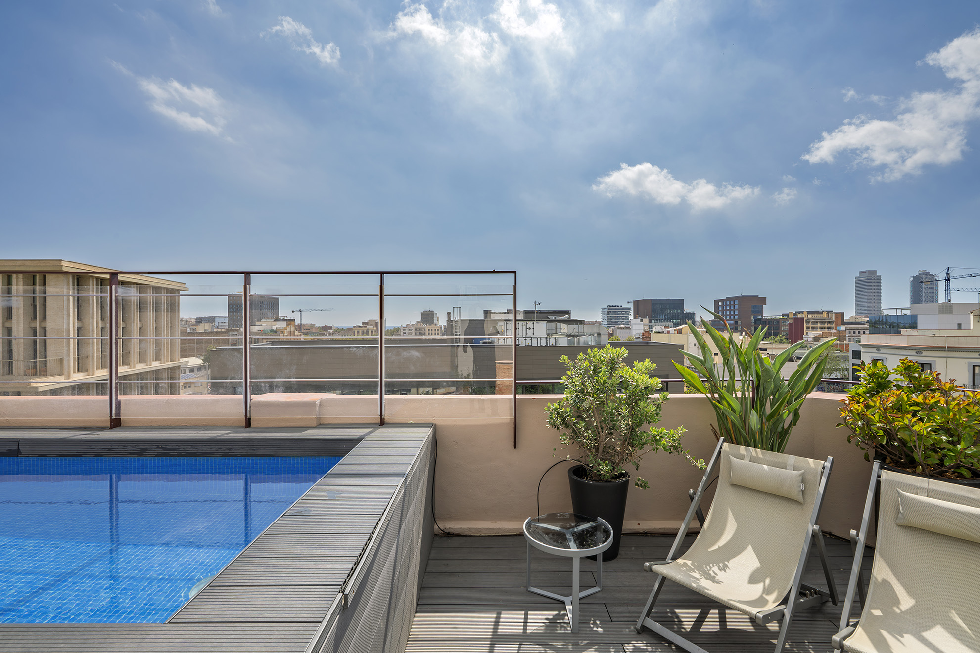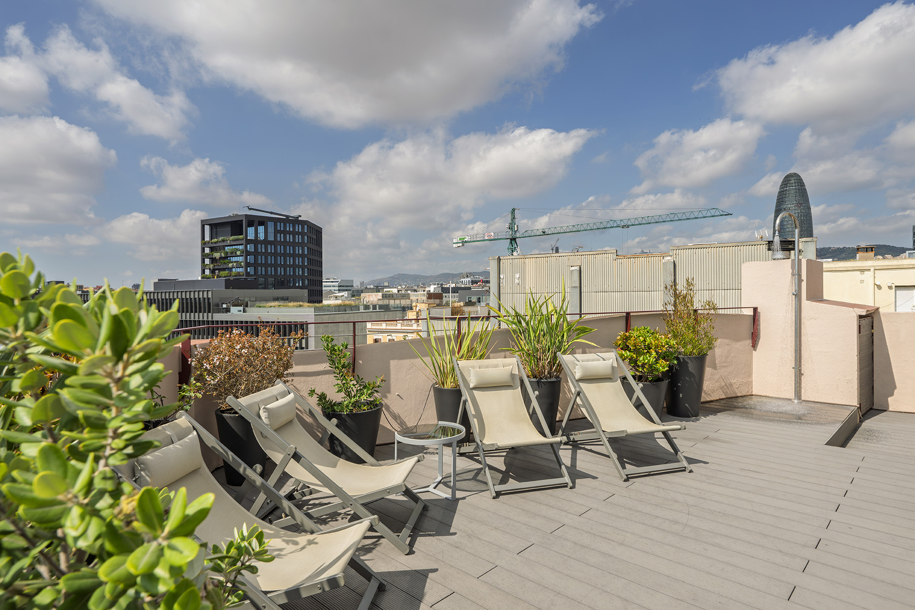 - Terraço: Terraço na cobertura com piscina compartilhada, espreguiçadeiras, mesas e cadeiras para todos os hóspedes.