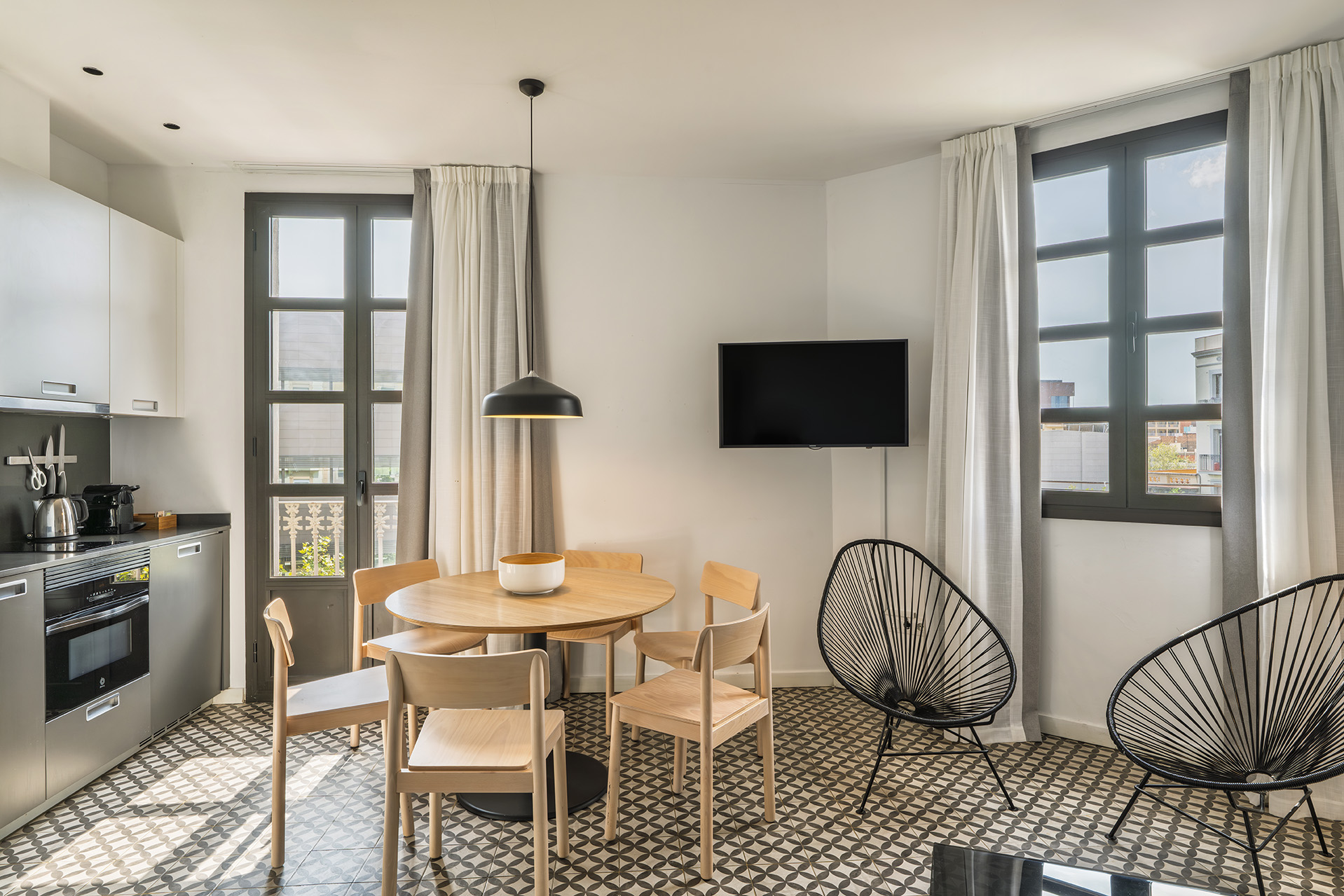 Apartamento elegante de dois quartos e duas casas de banho localizado na zona de Poblenou, ideal para um grupo de até cinco pessoas. Com seu design moderno, pisos em azulejo e abundante luz natural, este apartamento oferece uma estadia confortável e tranquila em Barcelona. Além disso, possui um terraço na cobertura com piscina compartilhada.